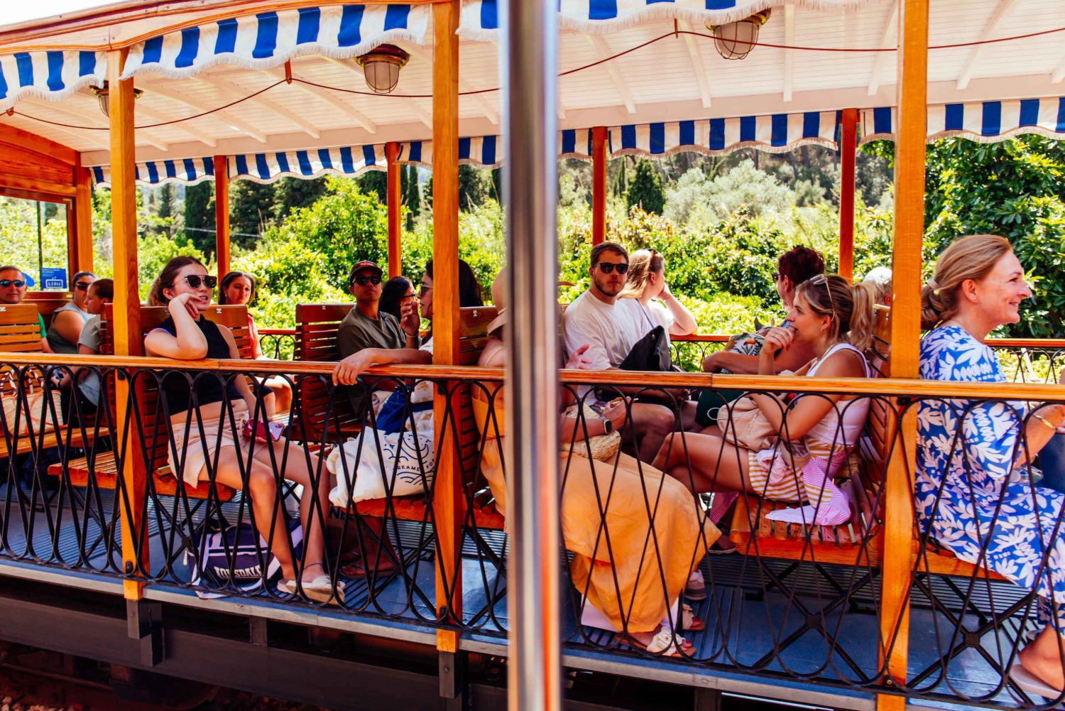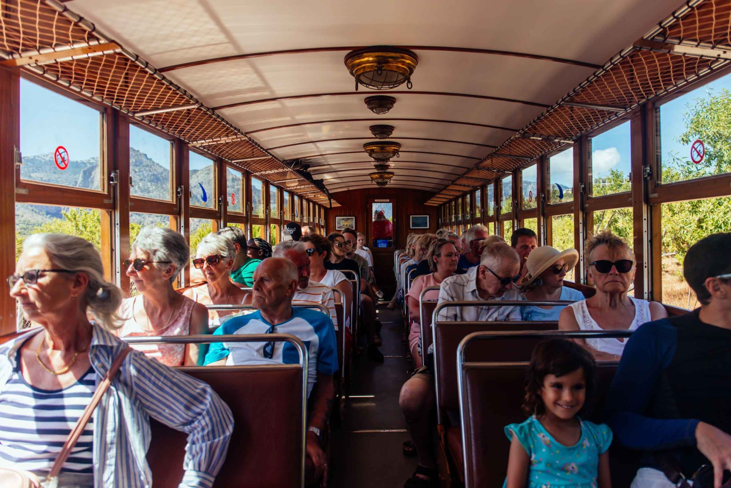 - Udflugten starter i Palma kl. 9.30. Vi tilbyder gratis transport t/r fra forskellige feriesteder (Playa de Palma, Arenal, Magaluf, Santa Ponsa, Paguera og Can Pastilla) til afgangsstedet i Palma. Så slipper du for at tage en taxi eller offentlig transport. Du kan også selv tage til mødestedet i Palma. Turen er afhængig af tog- og bådtidskemaer, så rejseruten kan i sjældne tilfælde blive kørt i omvendt rækkefølge. Ruten passerer gennem bjergrige områder. I tilfælde af vejspærringer eller ugunstige forhold kan guiden tilpasse rejseruten eller stoppestederne i overensstemmelse hermed. Hvis bådturen til Sa Calobra annulleres, tager vi i stedet for at tage bussen ned til Sa Calobra direkte til Port de Sóller med bus og nyder en bådtur rundt i bugten der. Denne ændring forhindrer lange ventetider i Sa Calobra (indtil kl. 13.30) og undgår, at du går glip af sporvognsturen i Sóller på grund af vejspærringer.