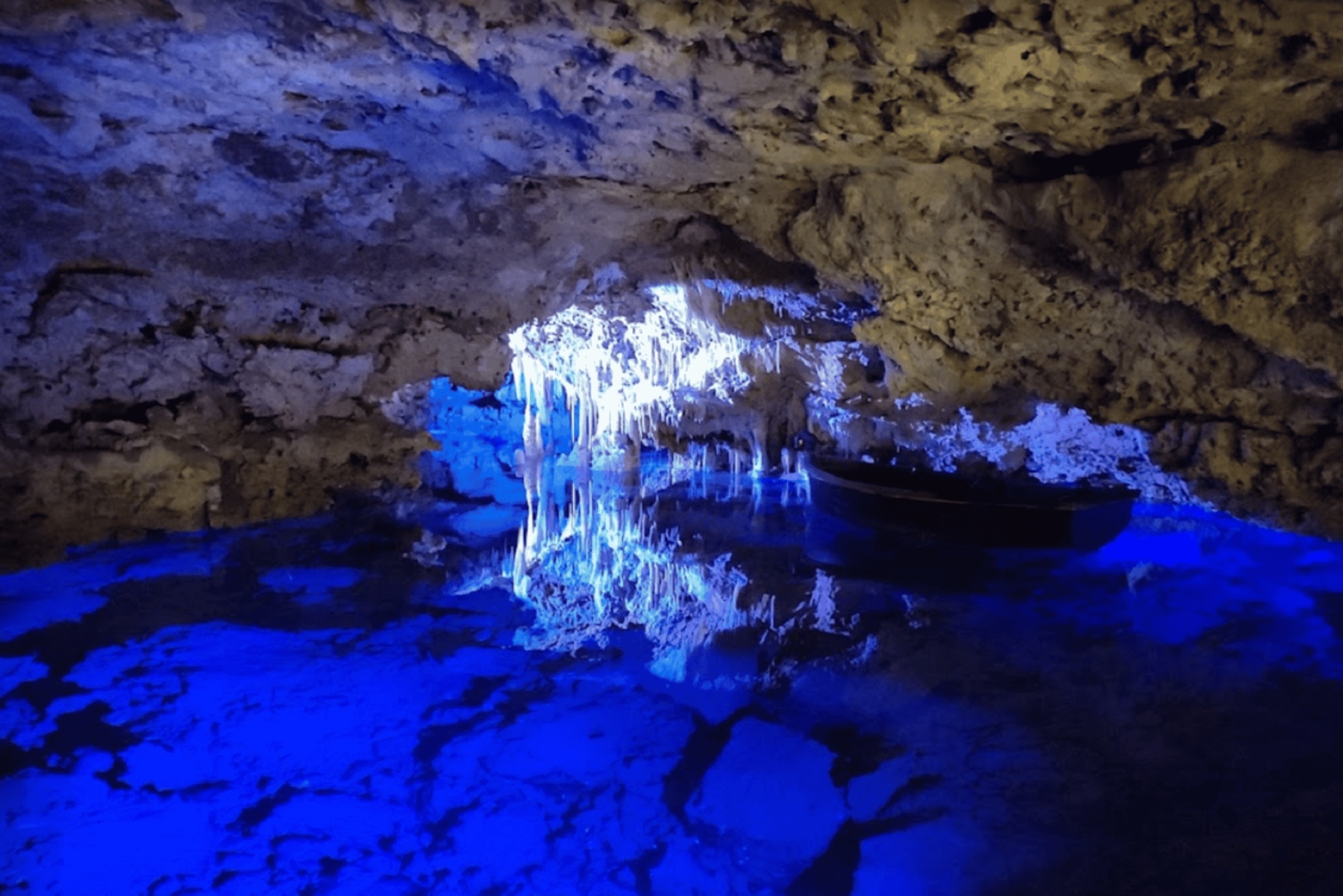 Folge dem Weg durch gewundene Gänge und geräumige Kammern, die mit atemberaubenden Stalaktiten und Stalagmiten geschmückt sind, die der Schwerkraft zu trotzen scheinen. Bestaune die schimmernden Reflexionen im kristallklaren unterirdischen See, die eine magische Atmosphäre schaffen, die du so noch nie erlebt hast.