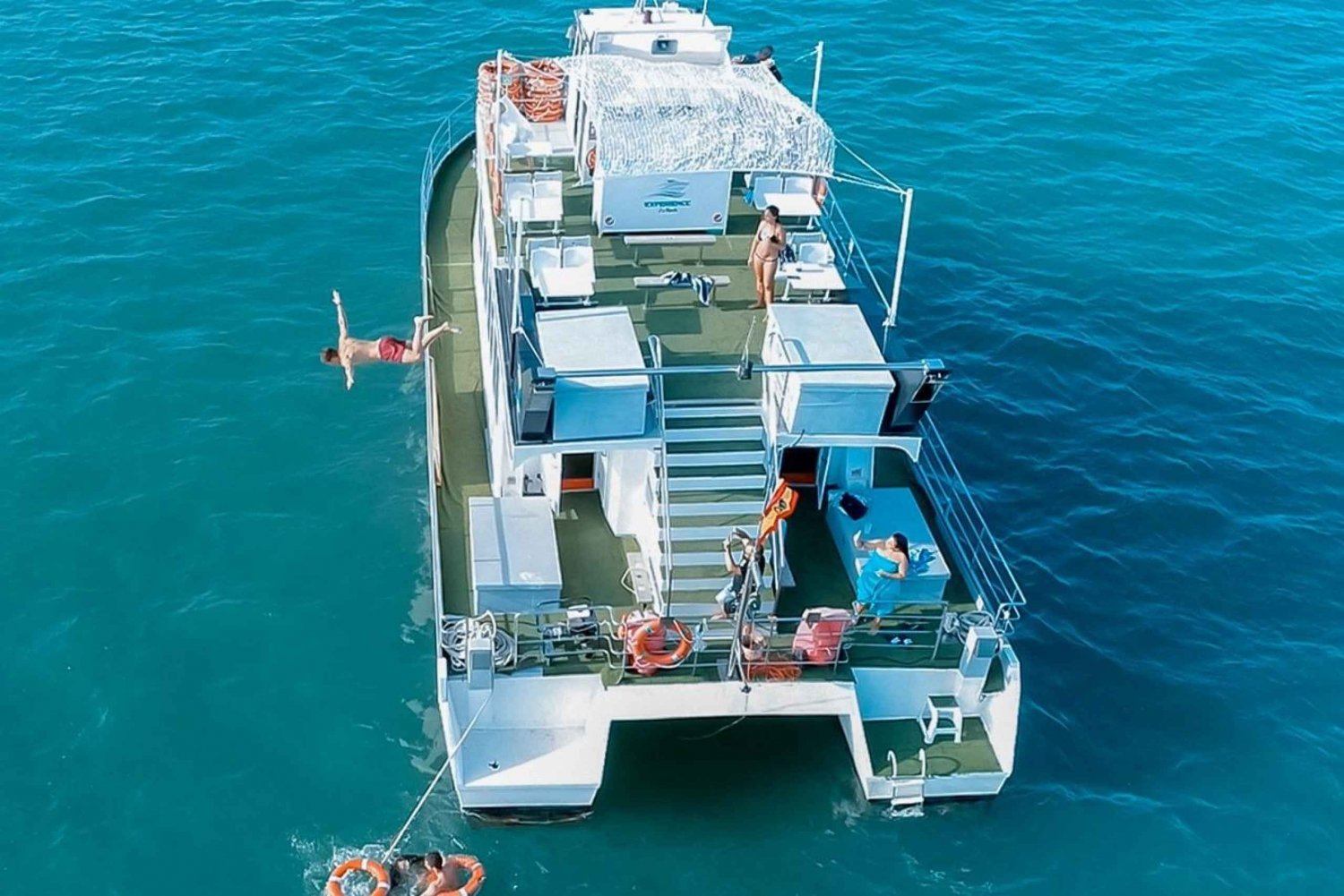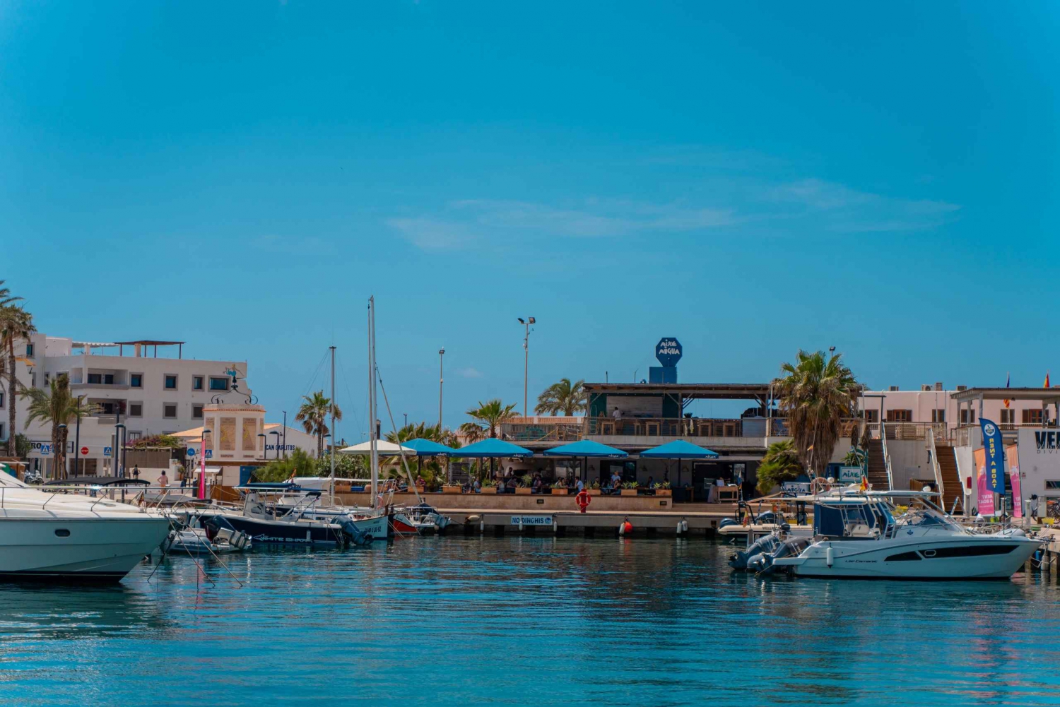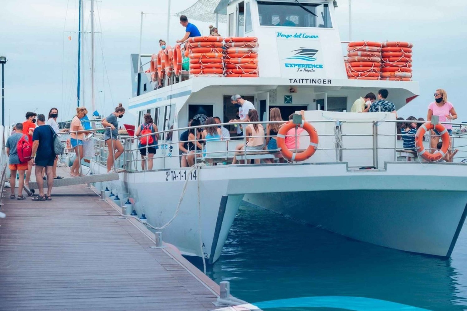 Sube a bordo de una cómoda embarcación en el muelle de Playa den Bossa, en Ibiza. Disfruta de la belleza del mar y del litoral mientras degustas refrescos, cerveza, sangría y agua durante el trayecto a Es Palmador y Ses Illetes. Disfruta de una deliciosa comida entre paradas, con paella de marisco, paella de pollo y paella vegana con ensalada mixta fresca, pan y alioli. Sumérgete en la diversión con paddleboards, hinchables, colchonetas flotantes y flotadores durante 3 emocionantes paradas: Es Palmador (1,5 horas): navega en paddleboard por la costa y participa en diversas actividades acuáticas. Después, saborea la comida servida a bordo. Ses Illetes (1,5 horas): Practica snorkel en aguas cristalinas y participa en otras actividades acuáticas. Muelle de Formentera (13:00): Desembarca para disfrutar de tiempo libre en la isla y explorar sus playas de arena antes de regresar más tarde con nuestras embarcaciones. Primera vuelta: Salida de Formentera a las 13:15 en el mismo catamarán, llegada a Ibiza a las 14:15. Segunda vuelta: Salida a las 18:15 con barra libre y aperitivos durante el trayecto de vuelta desde Formentera.Includes
