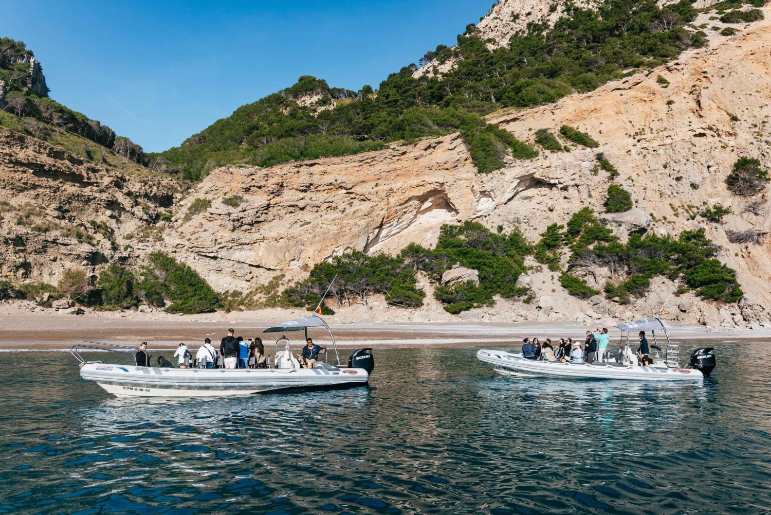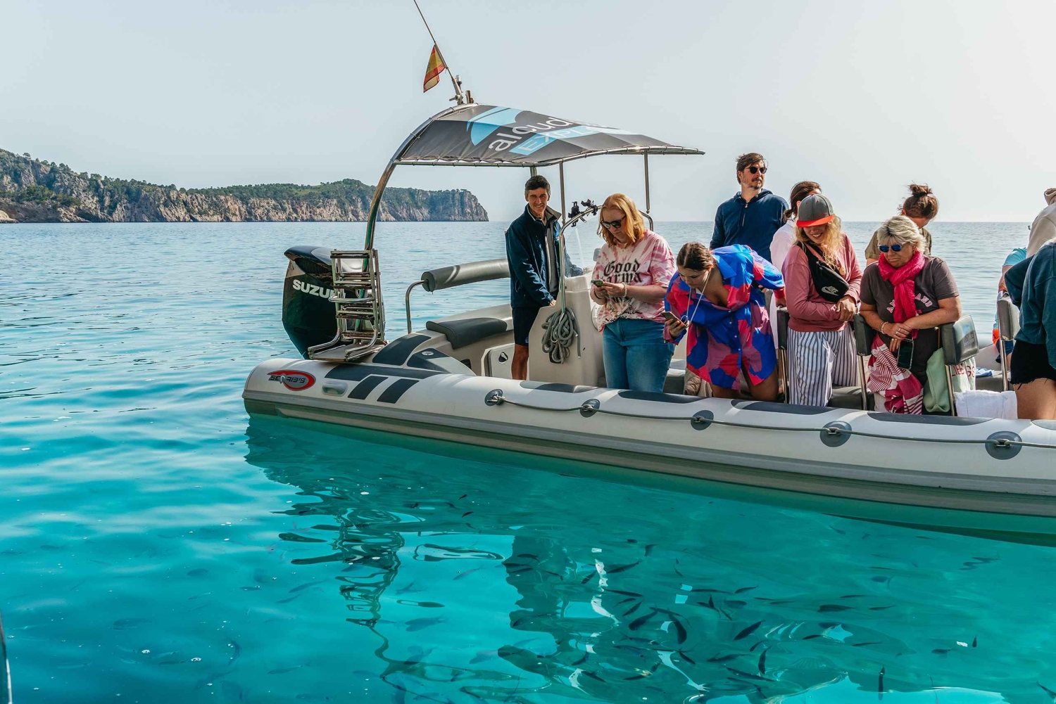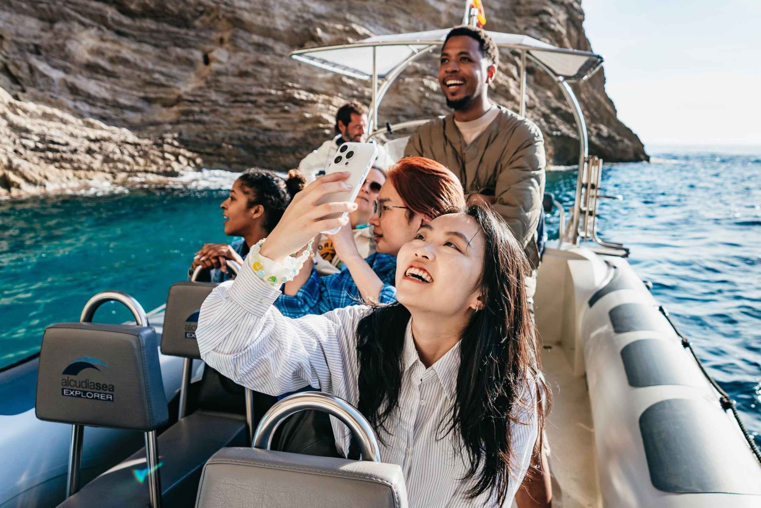 Embark on an unforgettable cruise from Alcudia and experience the calm of the sea. Visit sea caves, watch dolphins play in their natural habitat, and stop for swimming at Es Coll Baix.