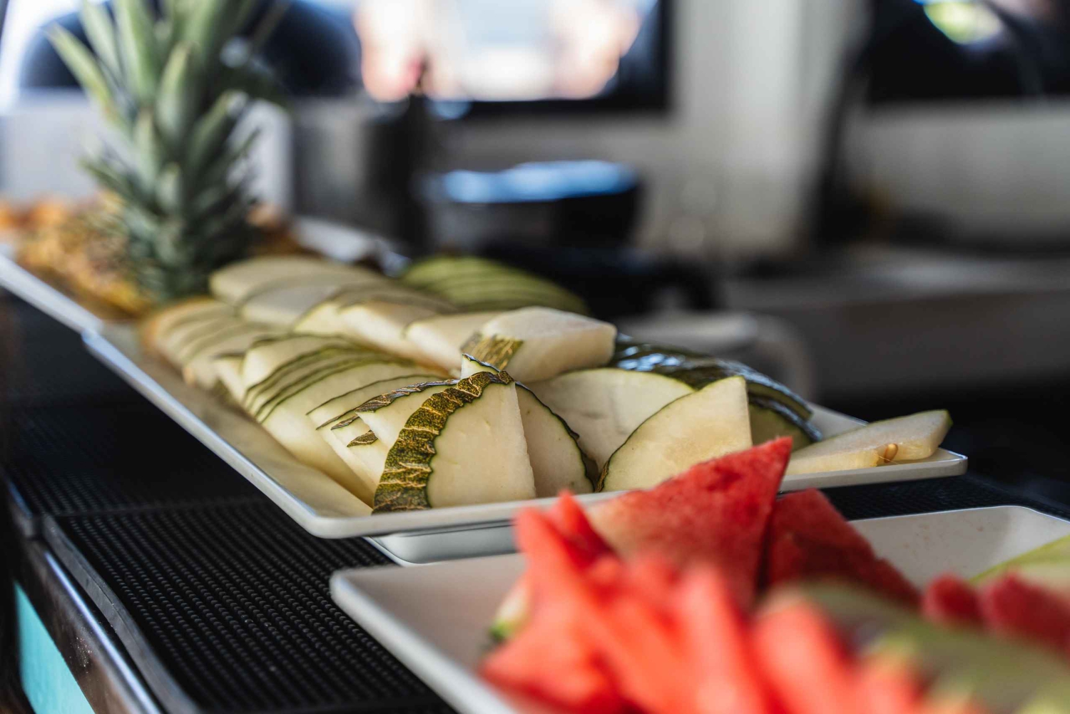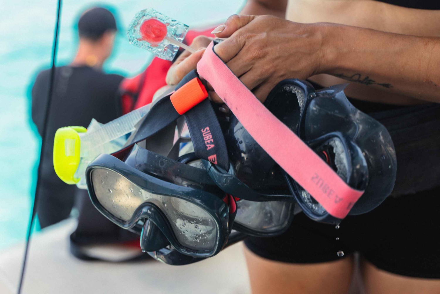 Boissons (eau, boissons non alcoolisées, bière et sangria) Nourriture : paella aux crevettes, paella au poulet, paella végétarienne, pain, alioli, salade mixte et fruits. Planches à pagaie, bodyboards, tapis flottants et nouilles de piscine Équipement de plongée avec tuba et gilets de sauvetageImportant Information