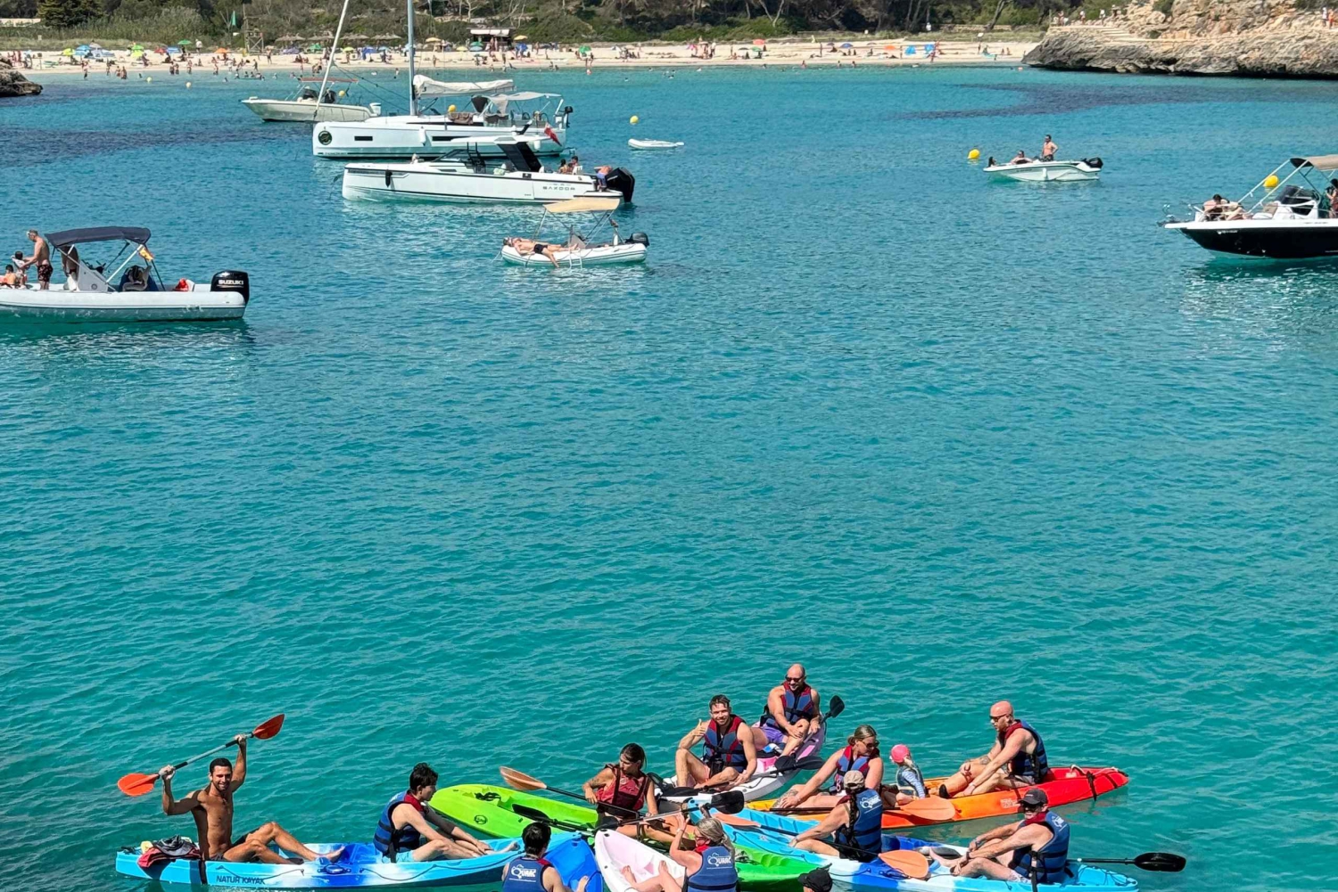 Itinerario dell'escursione guidata in kayak Dopo averti incontrato a Cala Barca, le nostre guide ti forniranno l'attrezzatura necessaria (kayak, pagaie, giubbotti di salvataggio, attrezzatura per lo snorkeling, ecc.) e ti spiegheranno il percorso e le regole di base per praticare l'attività con la massima sicurezza. Una volta preparati, pagaieremo verso Cala Mondragó e Cala S'Amarador, un viaggio di circa 30 minuti. Durante l'escursione, potremo osservare impressionanti grotte con acque cristalline. Una volta raggiunte Cala Mondragó e Cala S'Amarador, faremo una pausa di 10-15 minuti per rilassarci, scattare foto e goderci i dintorni. Sulla via del ritorno, faremo diverse soste in punti specifici: - Grotte di acqua cristallina: sosta per immergersi e fare snorkeling, esplorando la vita marina e godendosi le acque limpide. - Siti di coasteering: sosta in punti specifici per praticare il coasteering, adatto a tutti i livelli. Il nostro staff di professionisti valuterà la situazione e aiuterà a garantire la sicurezza di tutti i partecipanti. Infine, torneremo a Cala Barca pagaiando tranquillamente e godendoci il paesaggio. Nota bene: - L'escursione è adatta a tutti i tipi di pubblico e il nostro staff di professionisti sarà sempre a disposizione per fornire assistenza e garantire la sicurezza. - Ti consigliamo di portare con te crema solare, cappello, acqua e una macchina fotografica impermeabile. - Fino a giugno l'acqua rimarrà fredda e lo snorkeling potrebbe essere omesso.Includes