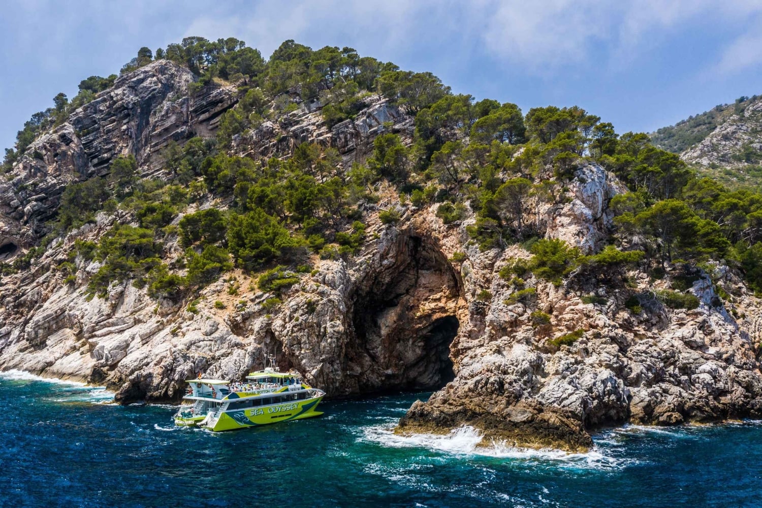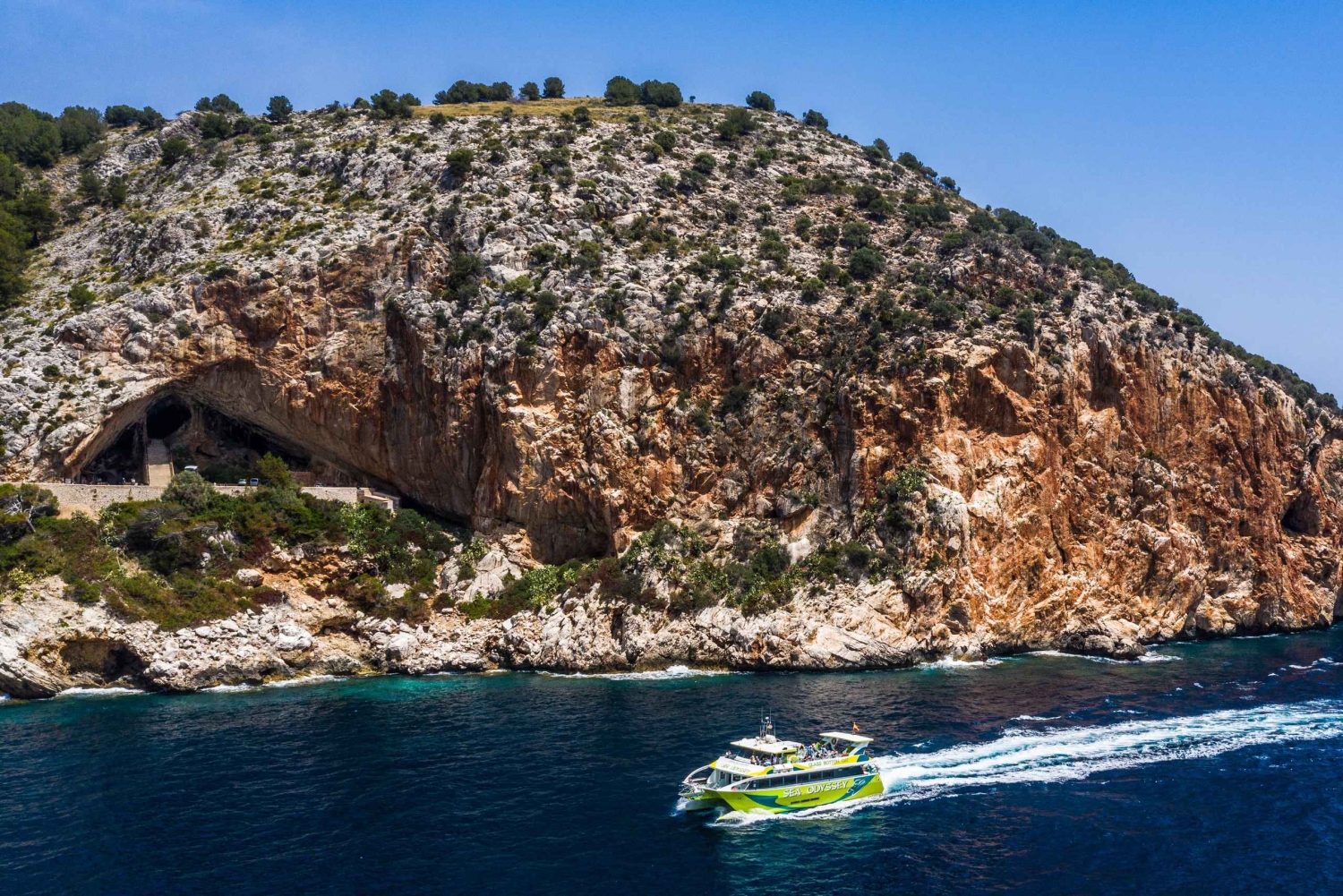 カラ ラトハダ発のクルーズでマヨルカ島の東海岸を探索しましょう。船のガラス張りの床からマヨルカ島の海中の世界を眺め、航海しながら島のビーチ、入り江、洞窟を探索しましょう。 休暇の希望やニーズに合わせて、さまざまなツアーの長さ、目的地、時間からお選びください。 2 時間の Sea Odyssey ツアーに参加して、フォント デ サ カラを巡り、カニャメルで水泳やシュノーケリングを楽しみましょう。カラ ミラーまで航海を続け、シー アドベンチャー ボートに乗り換えてからカラ ラトハダに戻ります。 より長い Sea Odyssey クルーズをご希望の場合は、2.5 時間のツアーをお選びください。フォント デ サ カラ、カラ ボナ、カラ ミラーを航海します。カニャメルで水泳、シュノーケリング、海底探検を楽しんだ後、カラ ラトハダに戻ります。 サ コマを訪れるには、3 時間のシー オデッセイ クルーズをお選びください。フォント デ サ カラまでクルーズし、カニャメルまで進みます。そこではシュノーケリングを楽しみ、海底を見ることができます。その後、サ コマ、カラ ミラー、カラ ボナ、フォント デ サ カラを巡航し、カラ ラトハダに戻ります。 5 時間のシー アドベンチャー クルーズをお楽しみください。フォント デ サ カラ、カラ ボナ、カラ ミラー、サ コマを通り過ぎます。カラ モルランダでシュノーケリング休憩を取り、ポルト クリストへ進みます。海賊の洞窟を訪れ、カラ ロマンティカをご覧ください。カラ ミラーでシー オデッセイ ボートに乗り換えて戻ります。 2 つのシャトル ボート オプションのいずれかを選択して、ビーチで自由時間をお楽しみください。 ポルト クリストへのシャトル ボートポルト クリストへのクルーズでは、フォント デ サ カラ、カニャメル、海の洞窟、カラ ボナ、カラ ミラー、サ コマ、カラ モルランダをご覧いただけます。途中で泳ぐこともできます。到着したら、ビーチで 3.5 時間リラックスしたり、ショッピングを楽しんだり、ドラック洞窟を訪れたり、木曜と日曜には地元の市場を訪れたりできます。 カラ ミラーへのシャトル ボート カラ ミラーへのクルーズでは、フォント デ サ カラ、カニャメル、海の洞窟、カラ ボナ港をご覧いただけます。カラ ミラーでは、ビーチ、レストラン、地元のお店を 3 時間お楽しみいただけます。月曜には地元の市場を探索できます。Includes