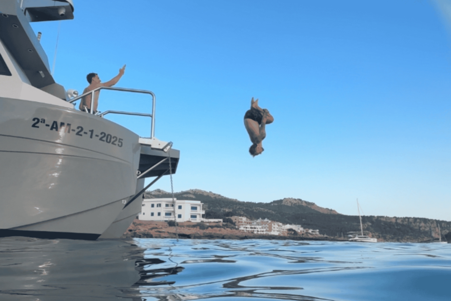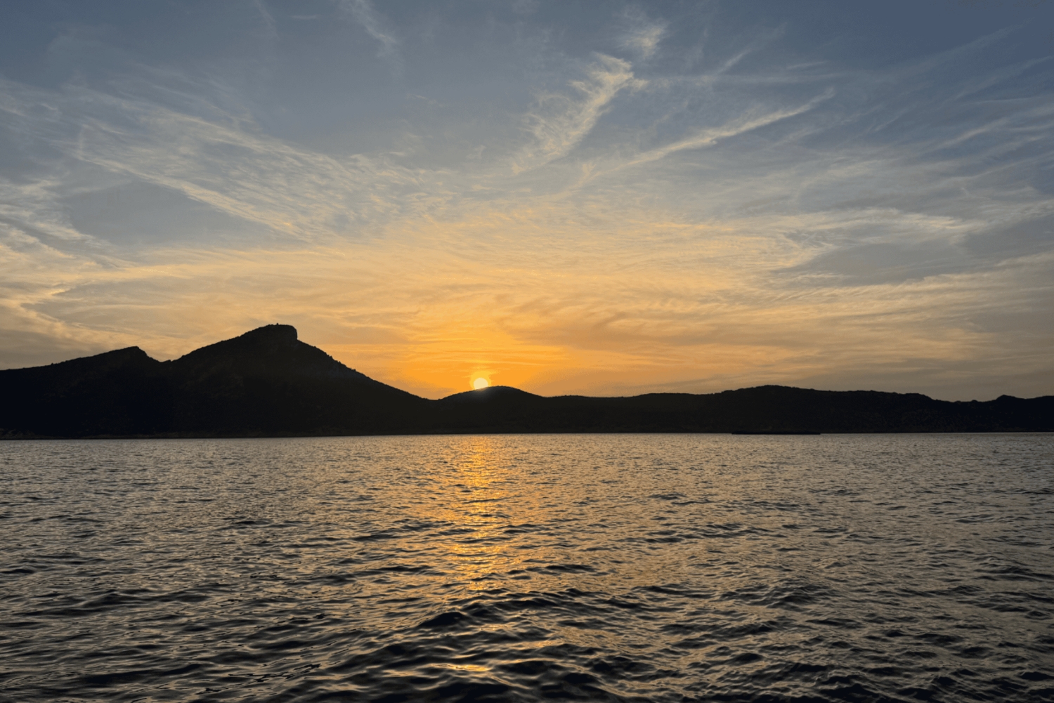 マヨルカ島南部のターコイズブルーの海を探索する、ユニークな体験をお楽しみください!ドラゴン島、魅力と海洋生物に満ちた自然公園の近くを航行しながら、リラックスして、素晴らしい景色に身を任せてください。 ボートツアーの後、サン・エルムの入り江に立ち寄り、海水浴やシュノーケリング、楽しいひとときをお過ごしいただけます。 リラックスして、海から眺める壮大な夕日を堪能できる、完璧なツアーです。さらに、手作りのピザとドリンクを1人1つずつご用意しており、航海中にエネルギー補給ができます。 行程。 出発地 アンドラッチ港(18:00) アンドラッチ海岸沿いをドラゴン島を回りながら航行。 サン・エルムで停泊し、焼きたてのピザを受け取ります。 カリアでシュノーケリング(40分) アンドラッチへ帰港 21:30Includes