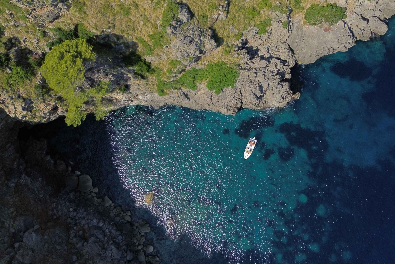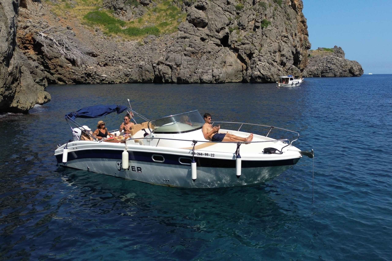 ソラー港から出発するボートツアーで、マヨルカ島で最も壮観なエリアの一つをDiscover。最大8名まで乗船可能な快適でプライベートなボートで、島の北西海岸の絶景を3.5時間かけて探検します。隠れた入り江、壮観な断崖、海からしかアクセスできない驚異的な洞窟を訪れます。ツアー中、透明度の高い海でスノーケリングを楽しむことができます。必要な装備はすべてご用意しています。 船長兼ガイドが、地元の海洋生物や生態系に関する興味深い解説を共有します。船内では、伝統的なパ・アン・オリとソフトドリンクをお楽しみいただけます。この体験には、プロのガイド、燃料、保険、スノーケリング装備、食事、ソフトドリンクがすべて含まれています。グループでリラックスしながら楽しむ、マヨルカの本当の美しさを体験する完璧な方法です。Includes
