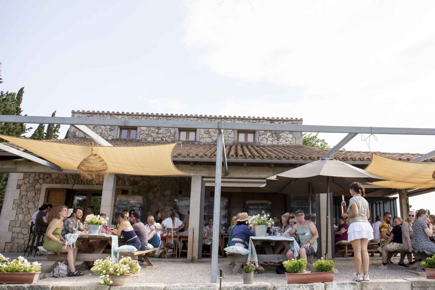 Dompel jezelf onder in de essentie van de wijncultuur van Mallorca met onze Alcudia Winecellar Tour met Wijngaard Bezoek, die een zeldzame blik biedt op de kunstzinnigheid en traditie van het maken van boetiekwijn. Dit intieme wijnhuis ligt in de idyllische buitenwijken van de noordelijke resorts van Mallorca en produceert jaarlijks een beperkte opbrengst van ongeveer 30.000 flessen, waarbij kwaliteit boven kwantiteit gaat - een bewijs van de niet aflatende inzet van de gepassioneerde wijnboeren. Je reis begint met een warm welkom van onze deskundige wijngids, die toevallig ook een van de eigenaren is, zodat je van begin tot eind een persoonlijke en authentieke ervaring hebt. Ontdek elk facet van het wijnmaakproces terwijl je door de weelderige uitgestrektheid van de wijngaard wandelt en de invloeden van de kust en het terroir in je opneemt die unieke kenmerken geven aan elke druivensoort. Duik dieper in het binnenste heiligdom van de wijnmakerij, waar eeuwenoude technieken naadloos samengaan met moderne innovatie in het streven naar uitmuntendheid. Van de eikenhouten vatenkamer tot het zorgvuldig samengestelde proeverijterras met uitzicht op het weidse landschap, elk moment is een viering van het rijke wijnbouwerfgoed van Mallorca. Bereid je gehemelte voor op een zintuiglijke symfonie tijdens een begeleide proeverij van vijf exquise wijnen, zorgvuldig gecombineerd met verrukkelijke hapjes gemaakt van lokaal geproduceerde ingrediënten. Ontdek de nuances van inheemse druivensoorten en onthul de verhalen achter elke fles, terwijl onze deskundige gids je verhalen vertelt over traditie, innovatie en de kunst van het wijnmaken. Sluit je onvergetelijke reis af met een ontspannen moment te midden van de serene schoonheid van de wijngaard, waar je kunt genieten van de herinneringen die je hebt gecreëerd en misschien zelfs een stukje van de wijnbouwerlijke erfenis van Mallorca mee naar huis kunt nemen met speciaal geprijsde flessen die je kunt kopen. Of je nu een doorgewinterde wijnliefhebber bent of een nieuwsgierige beginner, onze Alcudia Winecellar Tour belooft een ongeëvenaarde ervaring die nog lang na de laatste slok in je hart zal blijven hangen.Includes