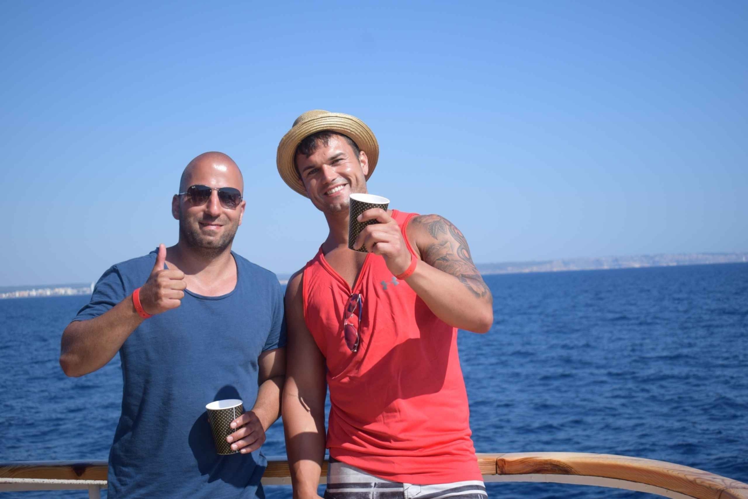 Få mest mulig ut av oppholdet ditt i Palma ved å utforske kysten på et båtcruise. En morgenavgang som er perfekt for å nyte havet. Møt opp på Barca Samba for å gå om bord på fartøyet før du nyter den fantastiske utsikten over Palma-bukten, Palma-katedralen og Tramuntana-fjellene mens båten krysser havnen. Deretter kaster vi anker i en vakker bukt sør på øya, hvor du kan hoppe i det kjølige vannet og bade eller snorkle. Nyt en enorm, middelhavspizza laget hjemme til lunsj, inkludert vann under hele turen. Deretter kan du se på live sport på satellitt-TV eller lytte til den fastboende DJ-en som spiller noen internasjonale rytmer. Til slutt drar du tilbake til havnen for å nyte Palmas vakre panoramautsikt.Includes