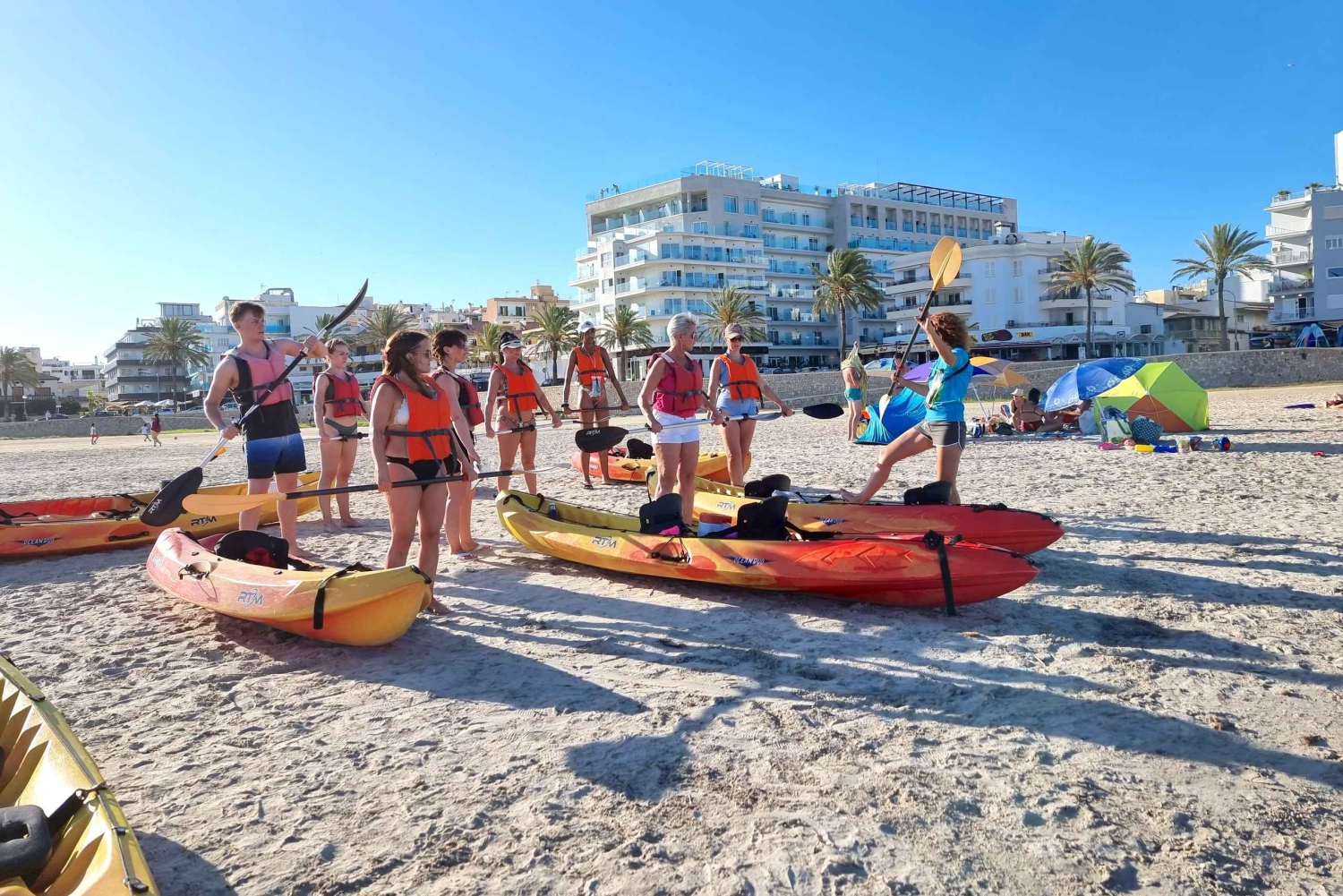 Utgangspunktet er vannaktivitetssenteret som ligger i Playa de Palma, Ca'n Pastilla, like ved sentrum av byen. Vi har et stort antall enkelt- og dobbeltkajakker tilgjengelig, med gratis skap og garderobeservice. En godkjent instruktør vil veilede og følge gruppen under hele turen. Det finnes flere ruter fra stranden, med ulike vanskelighetsgrader avhengig av deltakernes alder og preferanser. Snorkelmasker og vannsko er også tilgjengelig hvis gruppen har behov for det. Dette alternativet er en utmerket idé for å kombinere kajakkpadling med avslappende stunder.Includes