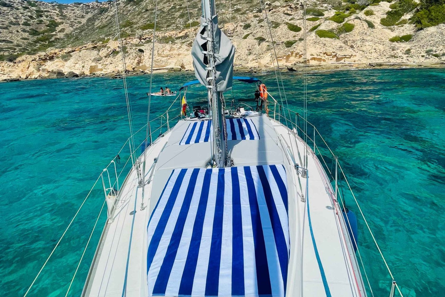 Seil i Palmabukten: En uforglemmelig opplevelse venter! Drømmer du om en perfekt dag til sjøs? Sett seil over den fantastiske Palmabukten, utforsk de skjulte buktene og nyt en deilig paella tilberedt om bord. Seilutflukter med skipper - din beste ferieopplevelse! Enten du er ute etter et heldagseventyr (8 timer), en halvdagsutflukt (4 timer) eller et magisk solnedgangscruise (2 timer), har vi den perfekte turen for deg. Seilbåtene våre: ⛵ Trui - 14,5 meter | Opp til 12 gjester + skipper ⛵ Gambitero - 12,5 meter | Opp til 11 gjester + skipper ⛵ Servus - 11 meter | Opptil 7 gjester + skipper Har du en stor gruppe? Ikke noe problem! Vi kan kombinere flere båter for en uforglemmelig seilopplevelse med opptil 29 gjester om bord. Vil du gjøre turen enda bedre? Legg til vår berømte PAELLA OG TAPAS og et utvalg av ubegrensede alkoholholdige drikkevarer for den ultimate opplevelsen! Tidsplan: Hele dagen: 10:00 - 18:00 Halv dag: 10:00 - 14:00 eller 14:30 - 18:30 Solnedgangscruise: kl. 19.00 - 21.00 Gjør deg klar for ditt livs sjøeventyr! Bestill seilopplevelsen din i dag.Includes