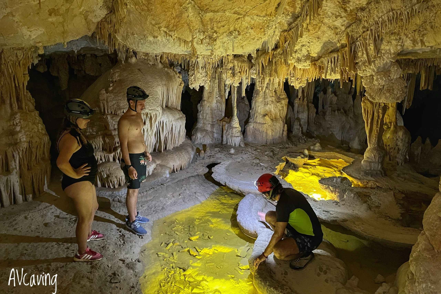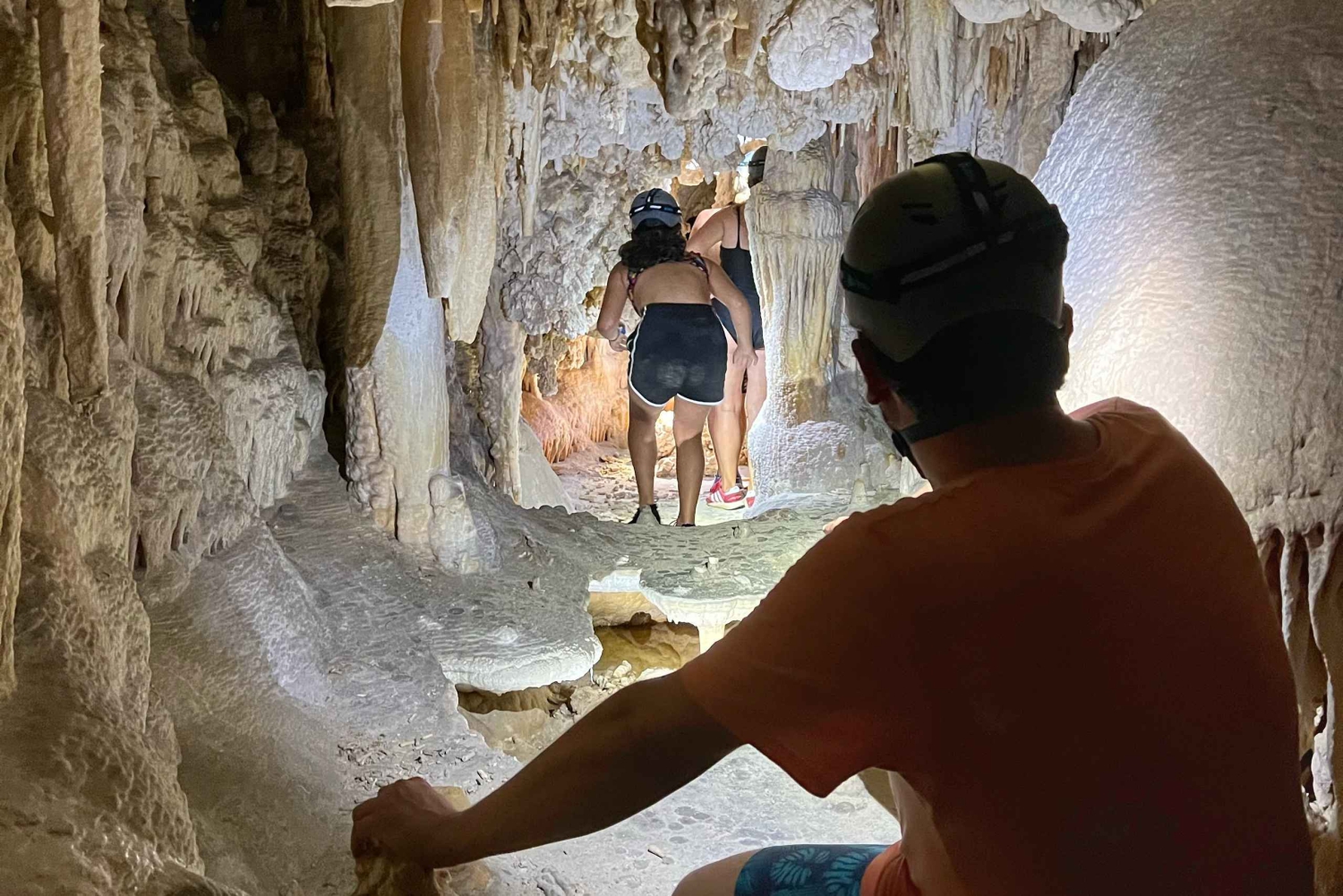Participe de uma incrível aventura no submundo e explore uma caverna única que contém um tesouro especial escondido. Depois de encontrar seu guia, siga o caminho até a entrada da caverna por cerca de 45 minutos. Uma vez lá, coloque o arnês e ouça a explicação sobre como usar o equipamento de espeleologia para descer o pequeno rappel/rappel que o levará a uma das extremidades da sala principal. Equipado com equipamento apropriado e uma sensação de emoção, você se aventurará na escuridão, pronto para descobrir a beleza cativante que está por vir. Uma vez dentro da caverna, você explorará este mundo incomum caracterizado por enormes formações. Aprenda com seu guia sobre os muitos segredos e curiosidades da caverna. Em seguida, dirija-se ao tesouro escondido, uma bela praia subterrânea. Um raio de sol ilumina gradualmente o caminho, revelando uma vista deslumbrante. Surgindo diante de você está uma praia deslumbrante, isolada dentro dos limites da caverna. As águas azuis, batendo suavemente contra a costa, criam uma trilha sonora relaxante que ecoa por toda a caverna. Reserve um tempo para relaxar, absorva a paisagem de tirar o fôlego, maravilhe-se com o jogo de luzes, coma alguns petiscos e, se desejar, mergulhe nas águas cristalinas cercadas por esse ambiente incrível. Não perca uma experiência que o deixará maravilhado com as maravilhas notáveis que existem nas profundezas do nosso planeta.Includes