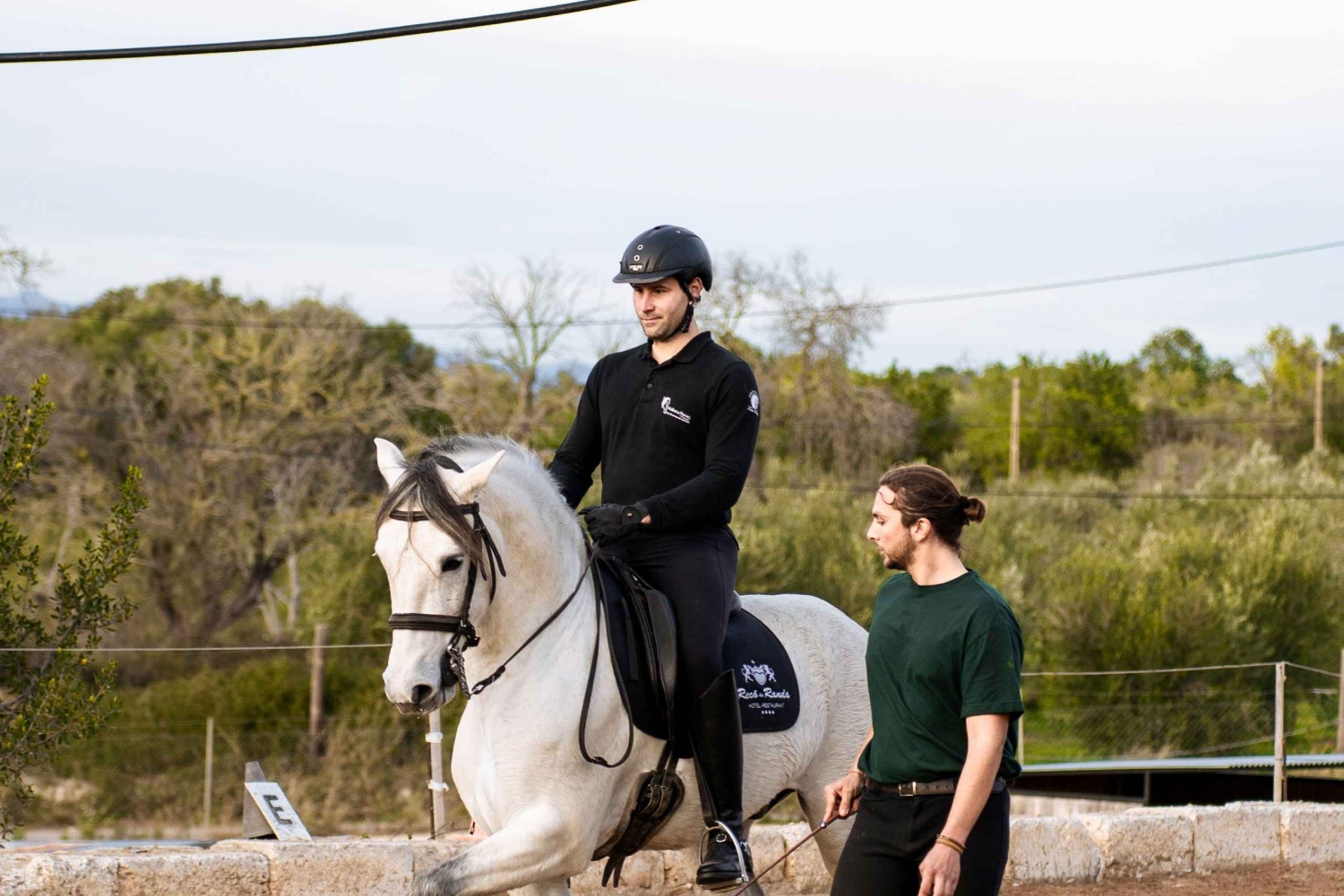 Мы предлагаем вам уникальный опыт: вы сможете насладиться настоящей испанской лошадью в течение полутора часов, где вы сможете забрать ее на лугу, подготовить и насладиться испанской высшей школой в течение 50 минут, а в конце дать ей хороший душ и отвести обратно в загон. Затем выпейте прохладительный напиток с инструктором, обменяйтесь впечатлениями о занятии. В классе вы сможете насладиться тремя видами воздуха, упражнениями на двух дорожках и высшей школой, такой как испанский шаг, пассаж и пиаффе. Приходите и наслаждайтесь.Includes