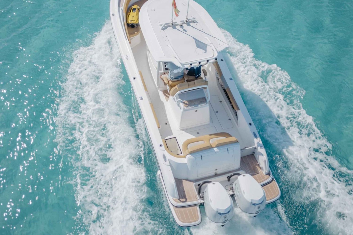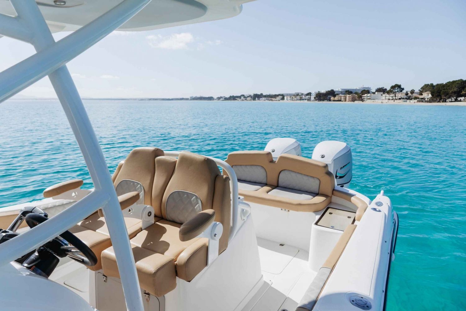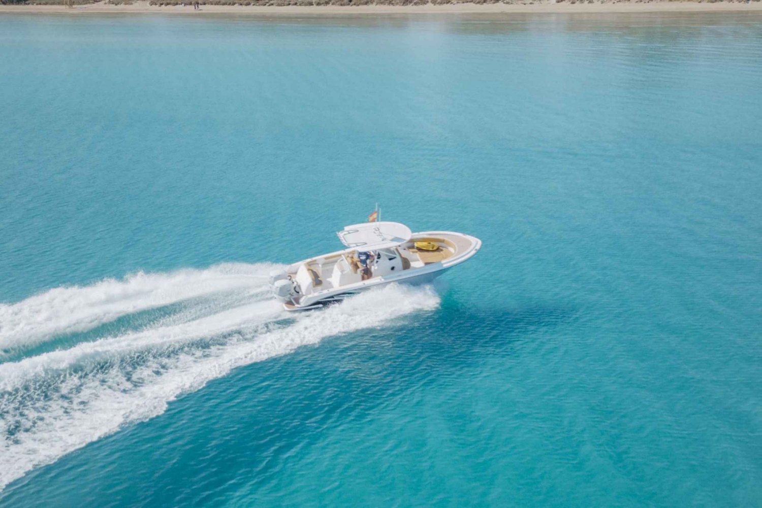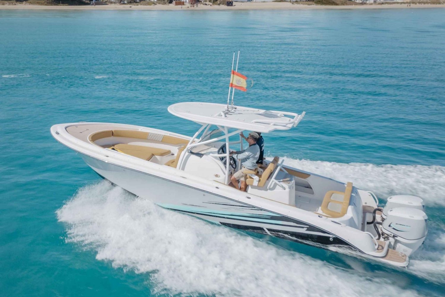 Наслаждайтесь и свободно исследуйте все уголки, которые вы предлагаете, с нашими лодками Diamond, которые предлагают вам комфорт, который вы ищете, чтобы провести незабываемый день, занимаясь подводным плаванием в удивительных кристально чистых водах. Благодаря открытой конструкции и двум двигателям Evinrude мощностью 300 л. с. вы можете наслаждаться максимальной скоростью и свободой на воде. У вас есть возможность забронировать лодку и связаться с нами, чтобы нанять шкипера, если вы этого хотите или у вас нет лицензии, чтобы вы могли расслабиться и насладиться моментом с друзьями или семьей.Includes