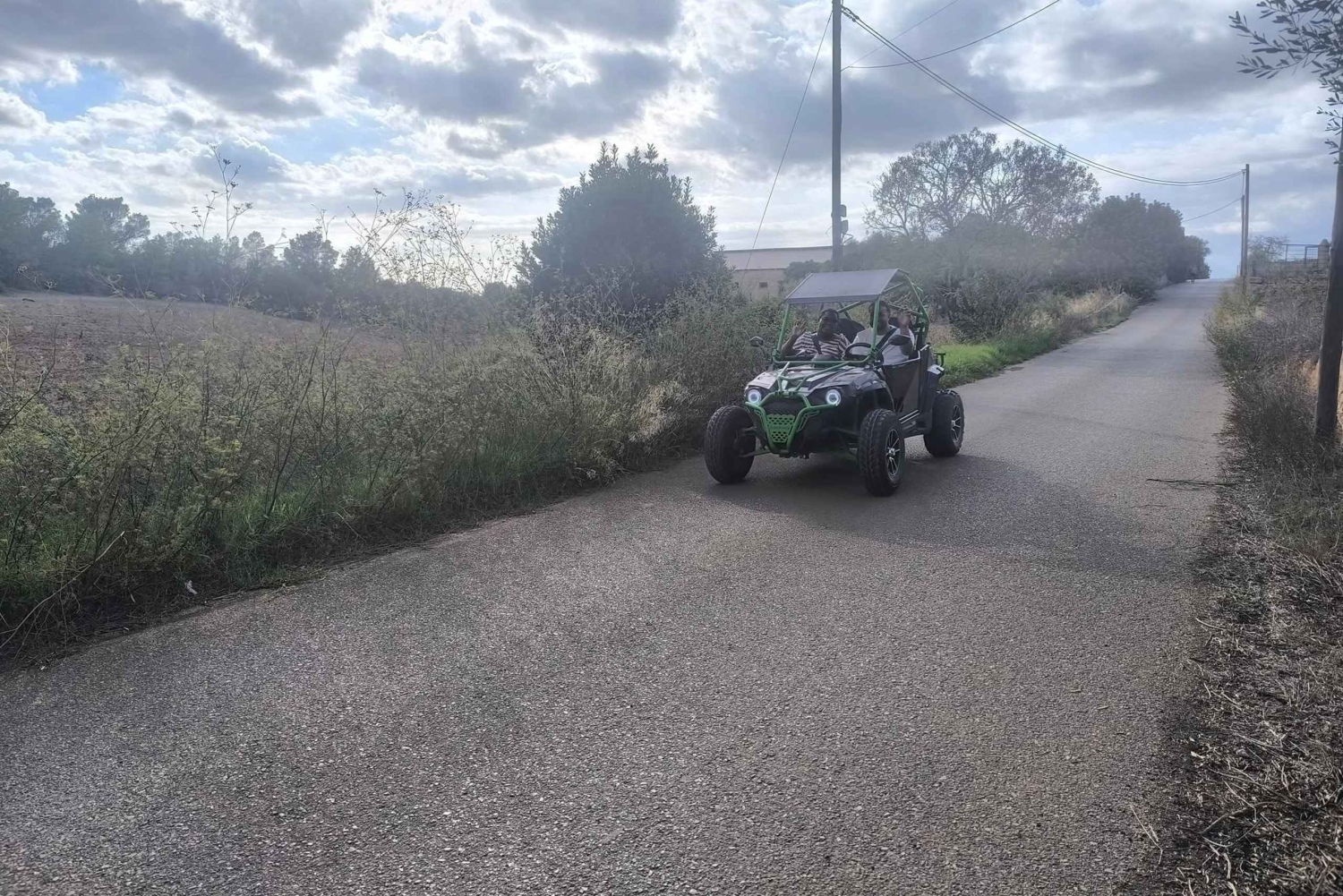Njut av en spännande buggytur genom de pittoreska landsbygdsområdena i den charmiga kommunen Llucmajor. Utforska unika landskap och njut av Medelhavets bris. Vandra på landsbygdsstigar som erbjuder fantastisk utsikt och en autentisk upplevelse av livet på Mallorcas landsbygd. Åk till den pittoreska strandpromenaden för att njuta av utsikten över havet och känna den friska havsbrisen. Därefter stannar du till på en vacker strand, där du har 15 minuter på dig att koppla av, fräscha upp dig och njuta av den naturliga omgivningen. Ta en promenad längs stranden, sola eller ta ett dopp i Medelhavets kristallklara vatten. Följ med erfarna guider och se till att du får ut det mesta av detta unika äventyr. Ingen tidigare erfarenhet krävs eftersom du får alla nödvändiga instruktioner och din säkerhet garanteras hela tiden.Includes