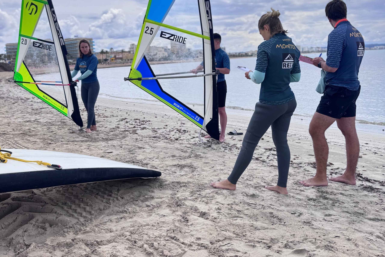 Njut av att lära dig vindsurfa på Mallorca på den närmaste stranden från Palma, den mest populära platsen för vattensporter. Börja enkelt segla med den utrustning som skolan tillhandahåller. I grupper om max 4 personer/1 instruktör lär du dig de grundläggande manövrerna och vändningarna. Stranden är perfekt för att lära sig vindsurfa tack vare det grunda vattnet, inga strömmar och bra vindriktning. Din instruktör kommer att lära dig i cirka 15 minuter på sanden de grundläggande vindriktningarna och hur man använder seglet och hur man går i vattnet. Efter den här kursen kommer du troligen att kunna fortsätta att öva själv på ett säkert sätt. Njut av din semester på Mallorca med att delta i vattensporter.Includes