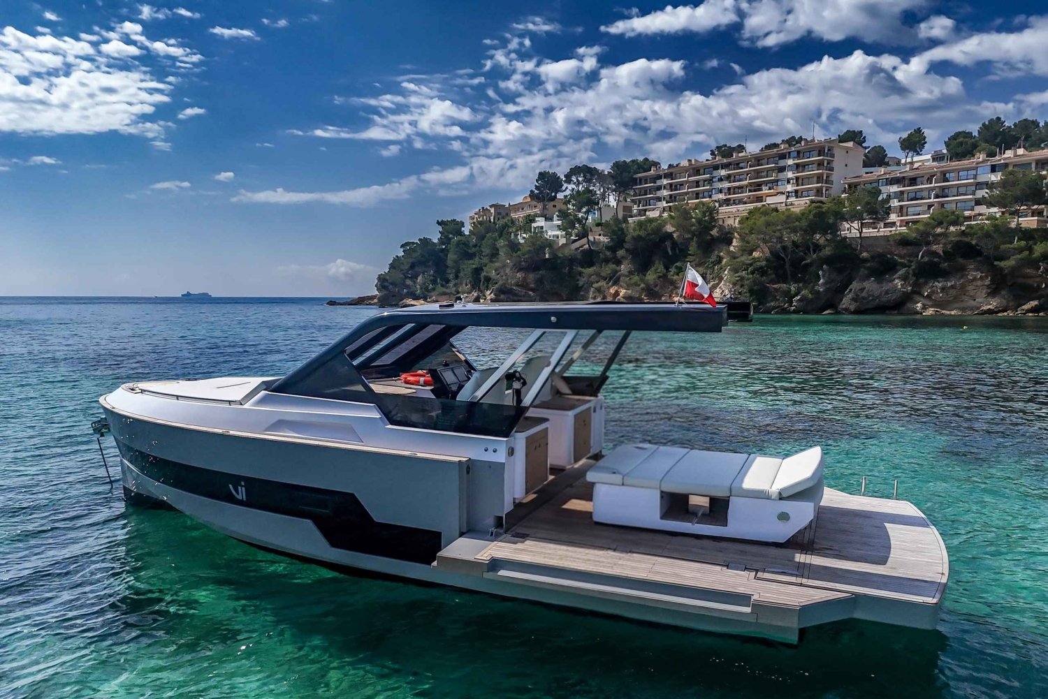 Ge dig ut på en naturskön resa längs Mallorcas hisnande kust ombord på den lyxiga motorbåten Vi Q4. Upptäck gömda vikar, dramatiska klippor och turkosa bukter som endast är tillgängliga från havet – och dyka rakt ner i kristallklart vatten för en uppfriskande simtur. Oavsett om du vill koppla av i solen, utforska klippiga havsgrotter eller flyta lugnt i en gömd vik – denna kryssning erbjuder den ultimata mediterrana flykten. Sätt på musiken, öppna proseccon och fira med stil ombord på den lyxiga motorbåten Vi Q4! Oavsett om det är en födelsedagsfest, svensexa/möhippa eller bara en sommarflykt med vännerna – denna privata kryssning handlar om oförglömliga upplevelser på öppet hav. Upptäck den dolda skönheten under vågorna på en privat snorklingskryssning ombord på den nya motorbåten Vi Q4. Segla till Mallorcas vackraste kristallklara vikar, kasta ankar i avskilda bukter och utforska det livliga marina livet strax under ytan. Letar du efter den perfekta bakgrunden för din nästa fotosession? Motoryachten Vi Q4 erbjuder en fantastisk, lyxig miljö omgiven av Mallorcas turkosa vatten, dramatiska klippor och gyllene solnedgångar – perfekt för att fånga oförglömliga ögonblick. Upplev Mallorcas mest romantiska sida med en exklusiv solnedgångskryssning ombord på motorbåten Vi Q4. Se solen sjunka under horisonten medan himlen färgas guld och havet glöder i dagens sista ljus – allt från komforten av en lyxig motorbåt. Anordna ett oförglömligt företagsevenemang, teambuildingdag eller affärsmöte ombord på den lyxiga motorbåten Vi Q4 utanför Mallorcas vackra kust. Det är den perfekta blandningen av avkoppling, prestige och en unik miljö som främjar gemenskap, kreativitet och gemensamma minnen. Smekmånadskryssning på Vi Q4 – Romantik till havs på Mallorca Fira början på ert nya liv tillsammans med en oförglömlig smekmånad ombord på den lyxiga motorbåten Vi Q4. Segla längs Mallorcas hisnande kust, omgiven av kristallklart vatten, gyllene solnedgångar och ren lugn.Includes