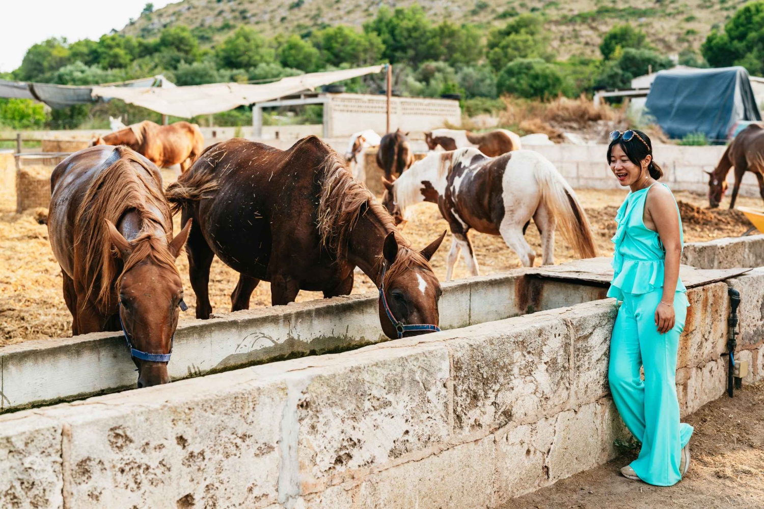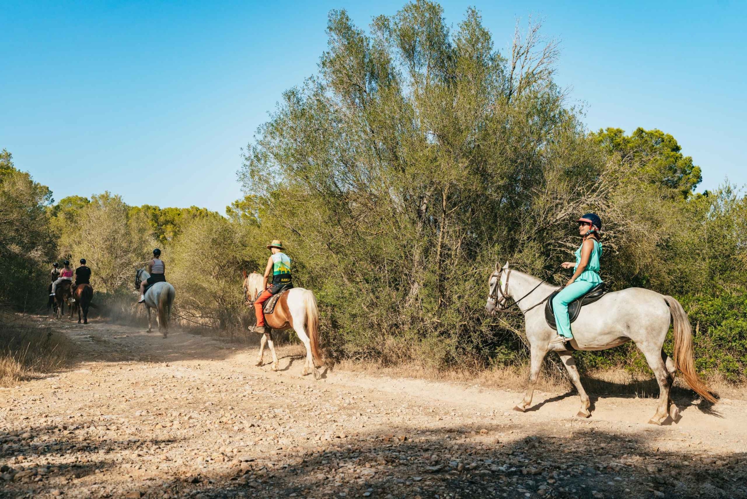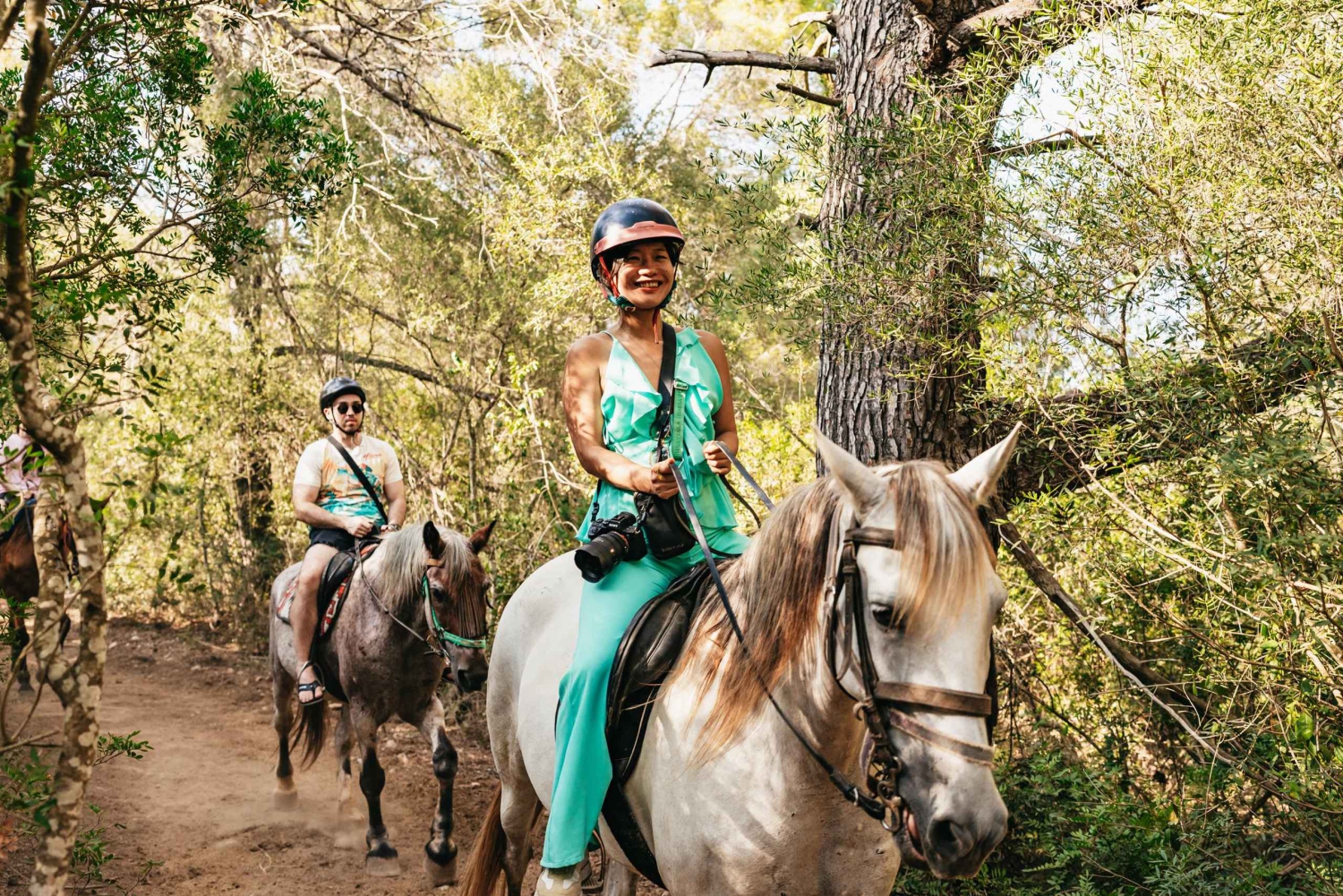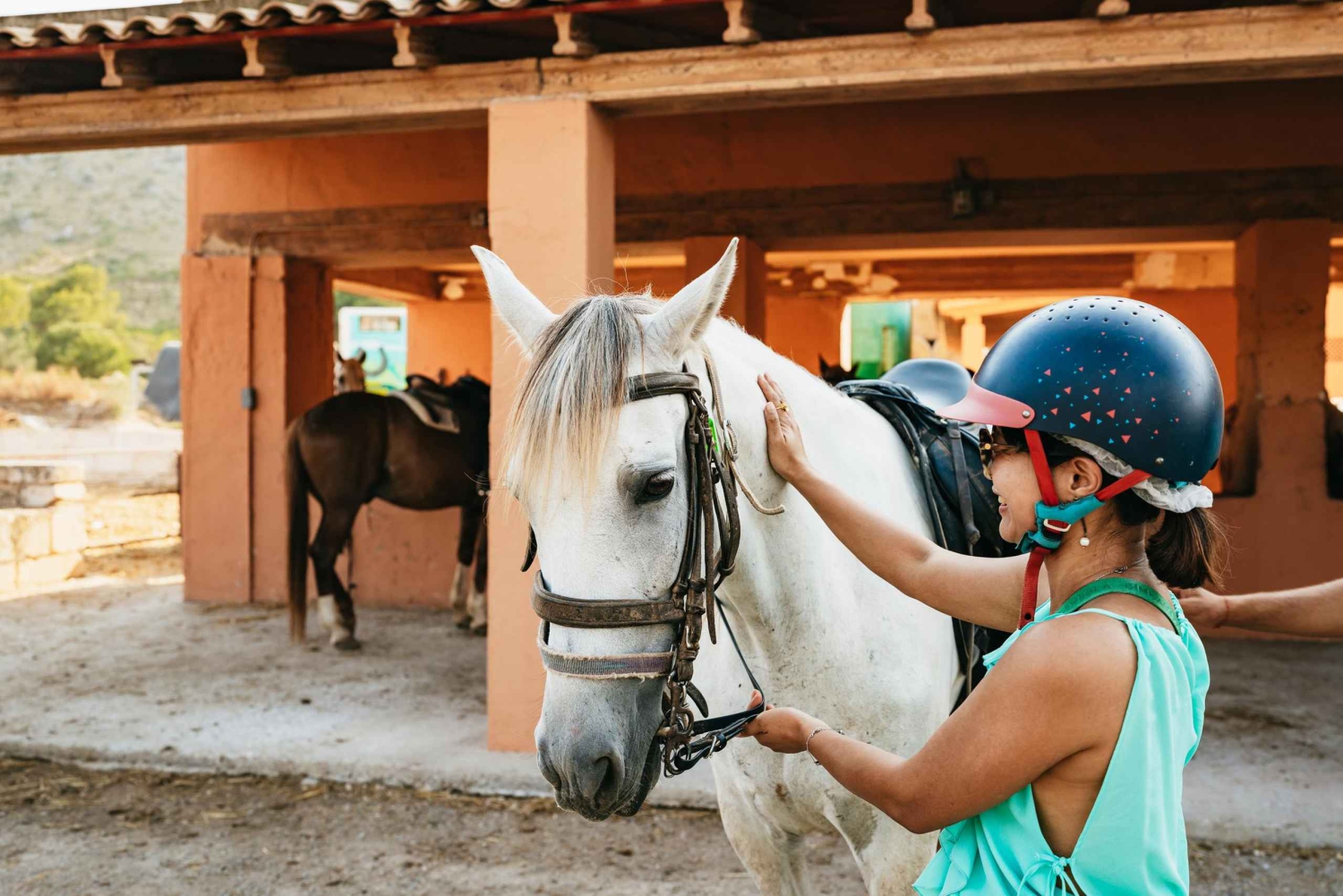 En timmes ridtur på hästryggen Kvalificerad guide Utrustning och hjälm Gratis hämtning och lämning från boenden på norra Mallorca. Vin, ost och andra lokala produkterEasy cancellation